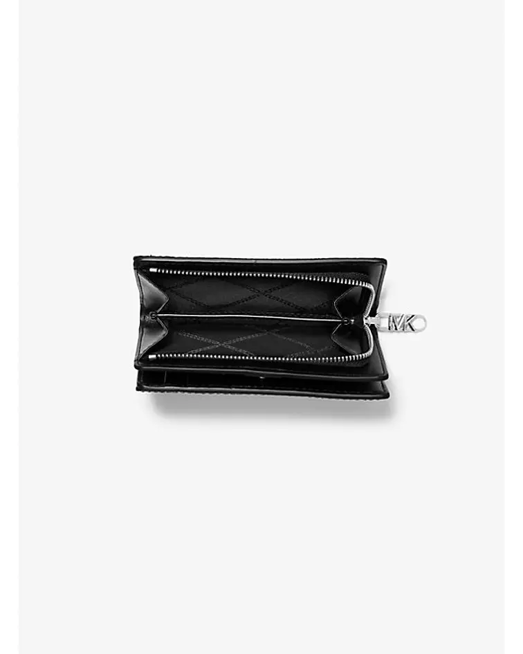 Una versión atrevida y elegante de nuestro emblemático estampado de logo en lona, esta cartera plegable Empire está diseñada con múltiples bolsillos para mantener tus billetes y tarjetas organizados. El exterior revestido resiste fácilmente el uso diario, mientras que el cierre a presión mantiene todo seguro. Combínala con el bolso a juego para un efecto dramático.